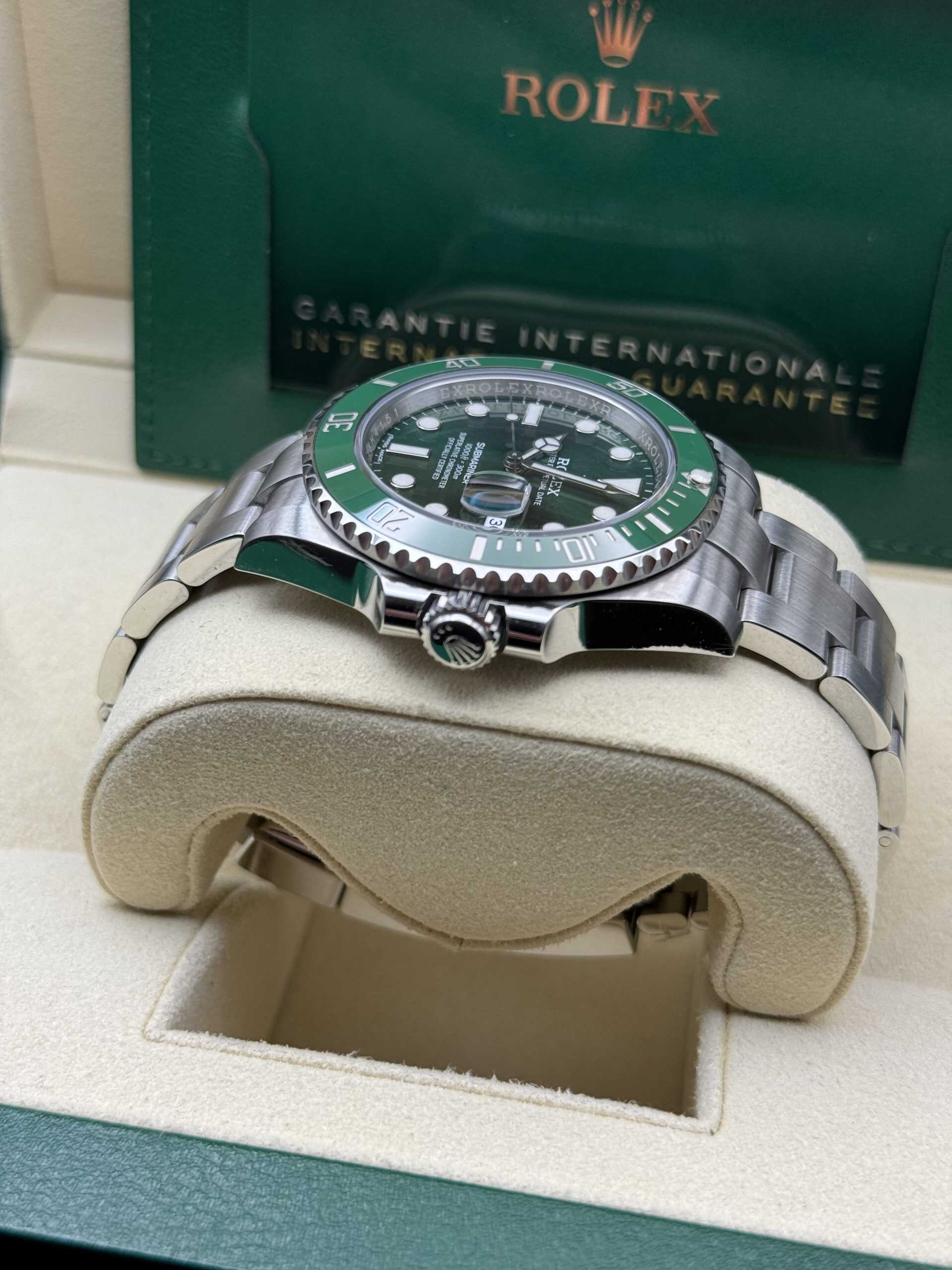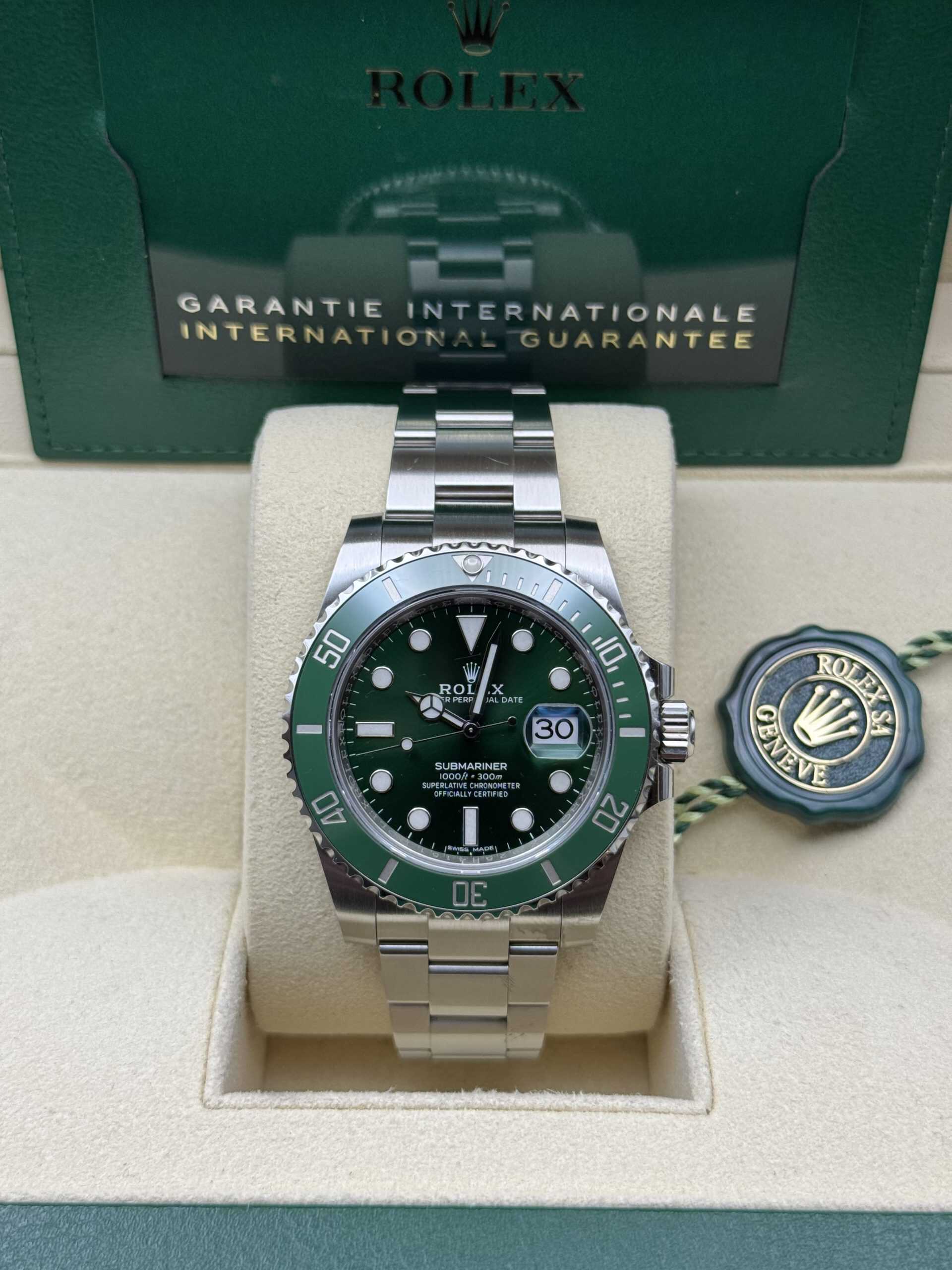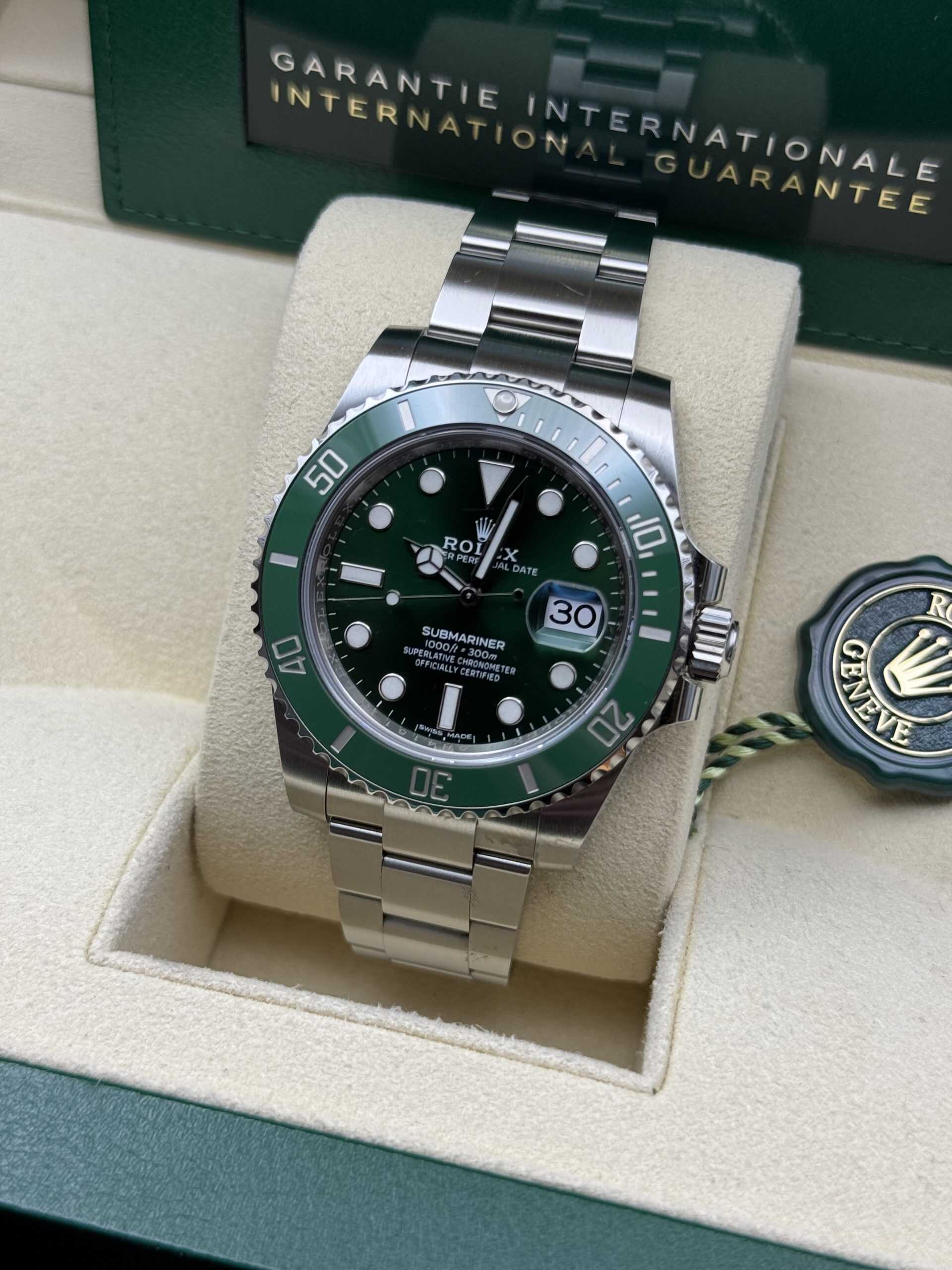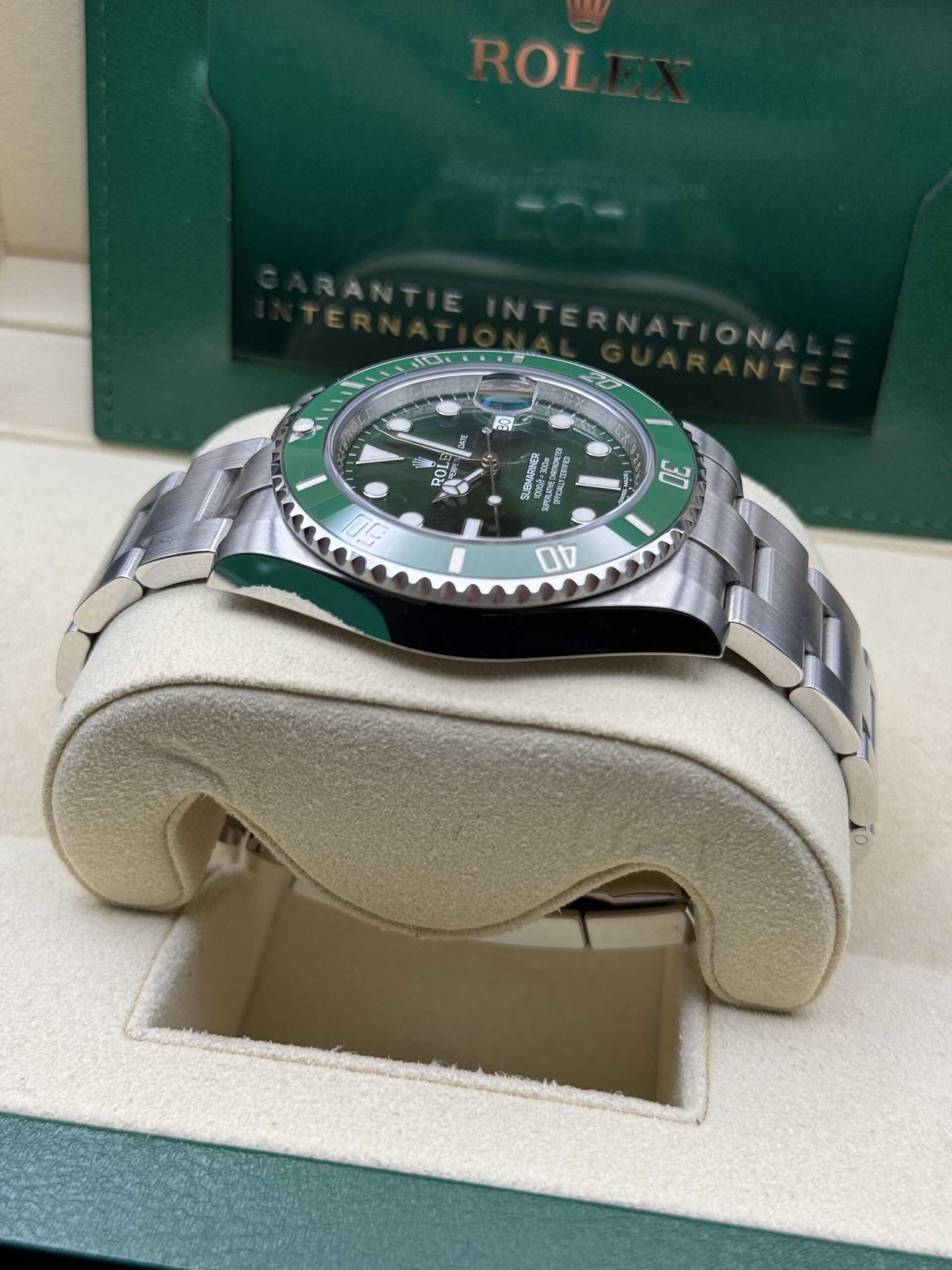 Introducing the Rolex Submariner Date 116610LV, affectionately known as the “Hulk,” a true icon in the world of luxury watches. This remarkable timepiece combines exceptional functionality with an eye-catching design that is sure to impress watch enthusiasts and collectors alike.